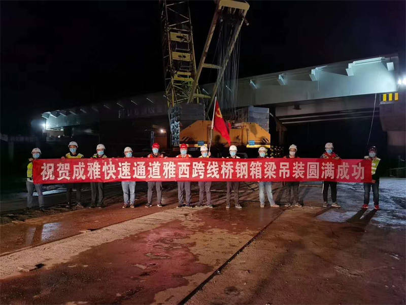 成雅快速通道雅西跨線橋鋼箱梁吊裝圓滿成功