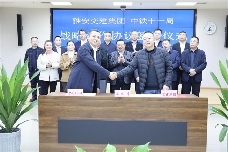 呂涵表示,中鐵十一局在承建川藏鐵路建設(shè)項目中,已與雅安交建集團建立了部分合作關(guān)系,結(jié)下了深厚友誼。希望雙方通過簽訂戰(zhàn)略合作協(xié)議,發(fā)揮各自在資源、資金、技術(shù)、人才、管理等方面優(yōu)勢,選擇符合國家法律和宏觀調(diào)控政策的合作領(lǐng)域,創(chuàng)新合作方式,注重合作效果,實現(xiàn)互利雙贏,建立長久友誼,共同為加快建設(shè)“川藏鐵路第一城、綠色發(fā)展示范市”、促進雅安經(jīng)濟社會發(fā)展貢獻國有企業(yè)的力量。
