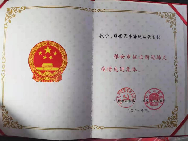 今年4月,蜀通公司雅安汽車客運(yùn)站黨支部被市委、市政府評為“雅安市抗擊新冠肺炎疫情先進(jìn)集體”,蜀通公司名山車站曹流滔同志被表彰為“雅安市抗擊新冠肺炎疫情先進(jìn)個(gè)人”。