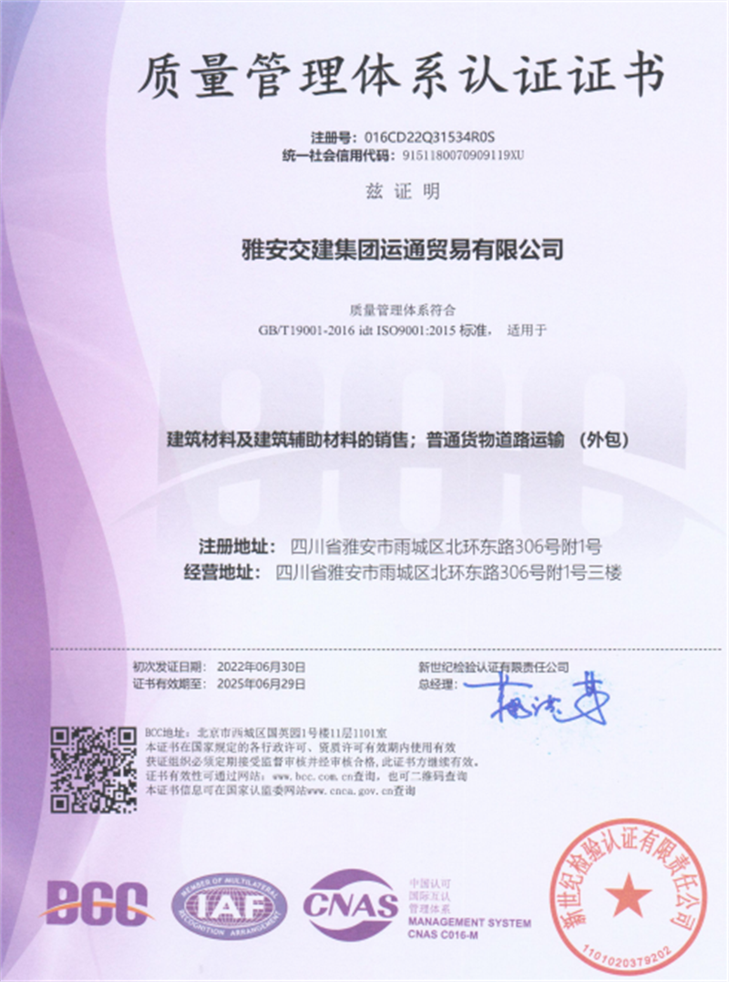 運(yùn)通公司將持續(xù)有效推進(jìn)質(zhì)量體系運(yùn)行的科學(xué)化、規(guī)范化,將質(zhì)量標(biāo)準(zhǔn)貫徹落實到每一項工作、每一個環(huán)節(jié)中,為公司持續(xù)穩(wěn)定健康發(fā)展提供重要保障。