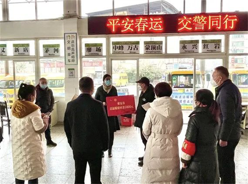 趙雅玲一行深入名山汽車客運站,看望慰問四川蜀通運業(yè)有限責任公司名山分公司春運工作人員,為一線職工送上新春祝福,殷切關心、仔細詢問企業(yè)生產(chǎn)和職工工作和生活情況。