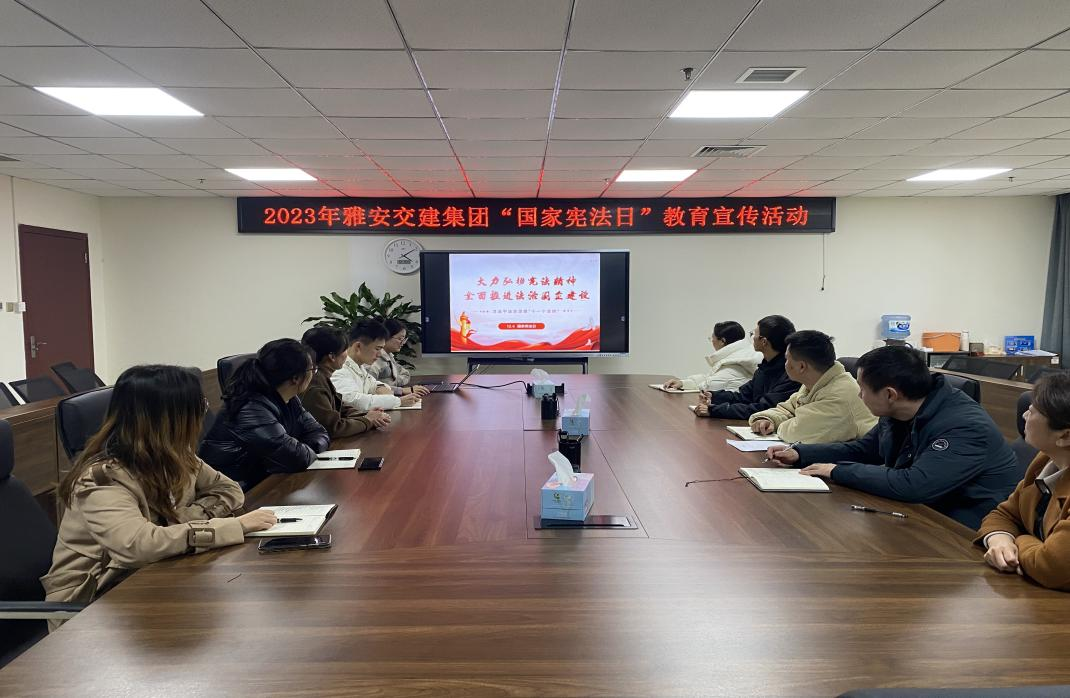 今天是我國第十個國家憲法日。為深入學習貫徹黨的二十大精神、習近平法治思想、習近平總書記關于憲法的重要論述,12月4日,雅安交建集團組織員工開展以“大力弘揚憲法精神,全面推進法治國企建設”為主題的“國家憲法日”宣傳教育活動,推動“憲法宣傳周”法治教育宣傳活動落地落實。