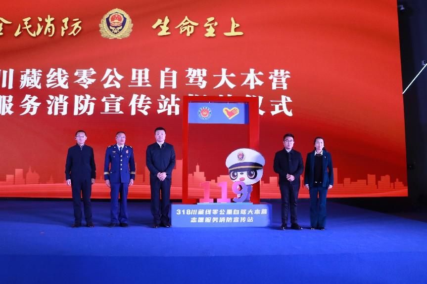 啟動(dòng)儀式上,與會(huì)領(lǐng)導(dǎo)為我市第18個(gè)消防志愿服務(wù)宣傳站——318川藏線零公里自駕大本營(yíng)消防志愿服務(wù)宣傳站揭牌,該站的建立開啟了地標(biāo)打卡地消防宣傳工作新篇章,將更好地為群眾開展消防安全培訓(xùn)服務(wù)、傳播消防安全知識(shí)。