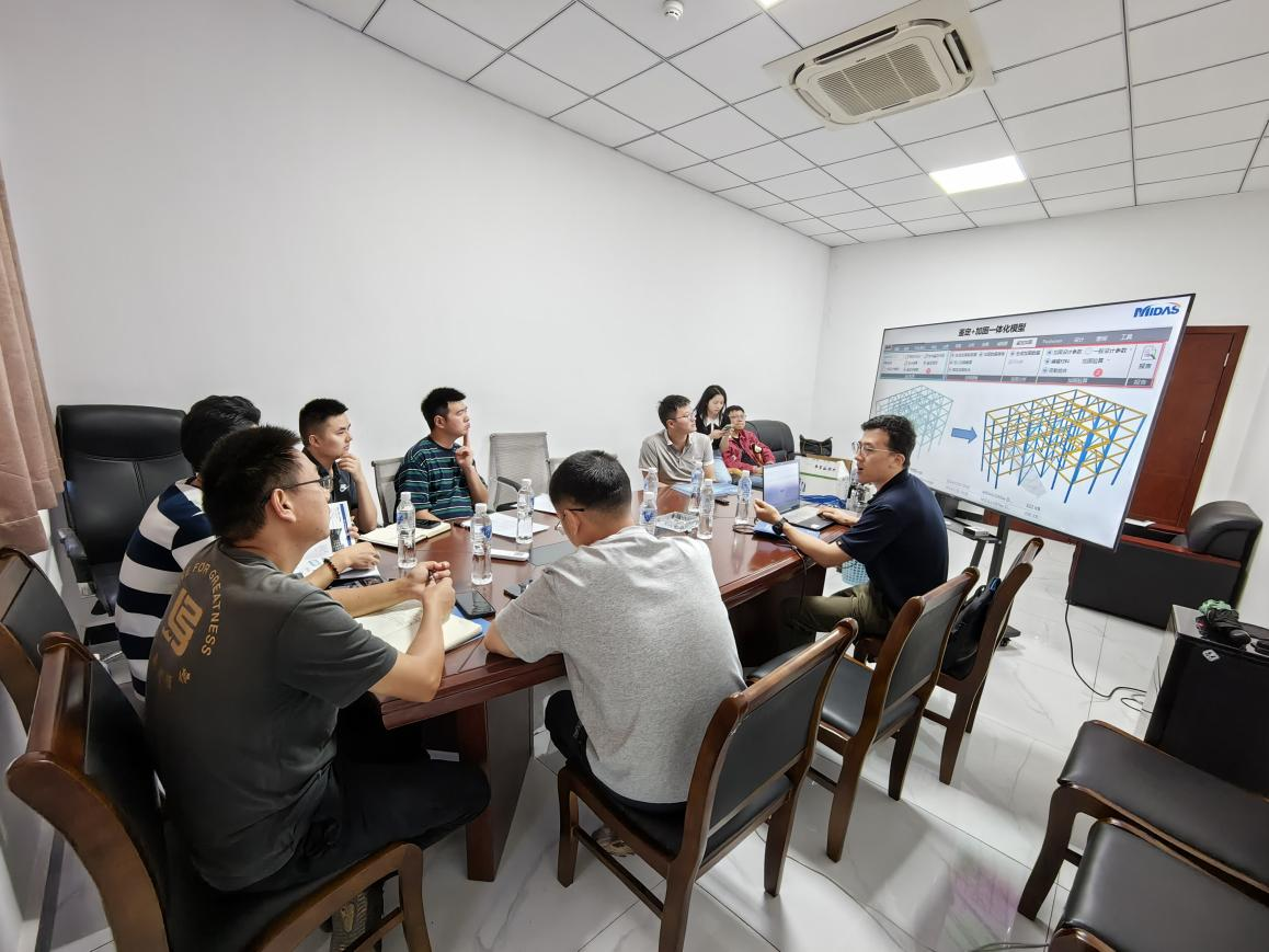 在交流會上,北京邁達(dá)斯技術(shù)有限公司技術(shù)經(jīng)理張渤雨首先對Midas Gen軟件在結(jié)構(gòu)鑒定與加固解決方案的綜合應(yīng)用進(jìn)行了深入闡述,通過具體案例分析了多種建筑類型的鑒定與加固方法。專家團(tuán)隊(duì)詳細(xì)介紹了Midas Gen軟件的最新升級,涉及施工階段分析、靜力彈塑性分析、動力彈塑性分析、隔震與消能減震技術(shù),以及鋼與混凝土結(jié)構(gòu)綜合分析和鋼結(jié)構(gòu)的專業(yè)知識。交流結(jié)束后,交流雙方技術(shù)專家就鑒定業(yè)務(wù)中的常見問題進(jìn)行了深入探討。