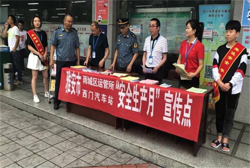 6月14日,蜀通公司雅安西門汽車站、雅安汽車站分別在站前廣場舉行了“防風(fēng)險、除隱患,遏事故”為主題的安全宣傳咨詢活動。西門車站精心準備了宣傳片12個、專欄2個、海報7幅、LED橫幅12個等安全宣傳資料,現(xiàn)場發(fā)放各種安全宣傳資料1000余份;雅安汽車客運站設(shè)置安全專欄9個、LED標(biāo)語12幅、宣傳視頻10個、發(fā)放宣傳資料800余份。宣傳內(nèi)容涵蓋了安全生產(chǎn)法律法規(guī)、道路旅客運輸安全知識、公民預(yù)防恐怖活動行為指引、客運行業(yè)打非治違、客運班線實名制售檢票、安全帶的重要性、乘車安全常識、公共場所如何預(yù)防踩踏事故等安全知識和技能以及“三不進站六不出站”管理規(guī)定及蜀通官方微信購票平臺等。