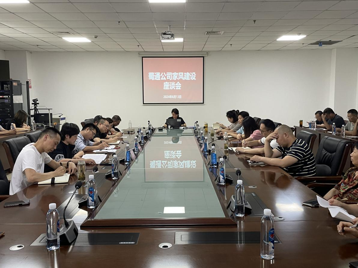 為鞏固提升“雅廉細(xì)胞”示范單位成色,6月13日蜀通公司召開2024年度家風(fēng)建設(shè)座談會(huì),引導(dǎo)和激勵(lì)領(lǐng)導(dǎo)干部家屬把家風(fēng)建設(shè)擺在首要位置,廉潔修身、廉潔齊家,以優(yōu)良家風(fēng)涵養(yǎng)廉政作風(fēng)。蜀通公司經(jīng)營班子成員、中層干部公司部分重點(diǎn)崗位人員及家屬參加會(huì)議。