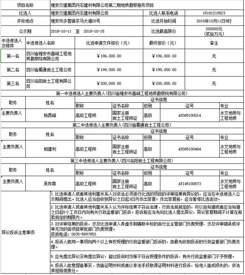 雅安交建集團(tuán)丹石建材有限公司第二期地質(zhì)勘察服務(wù)項(xiàng)目比選公示