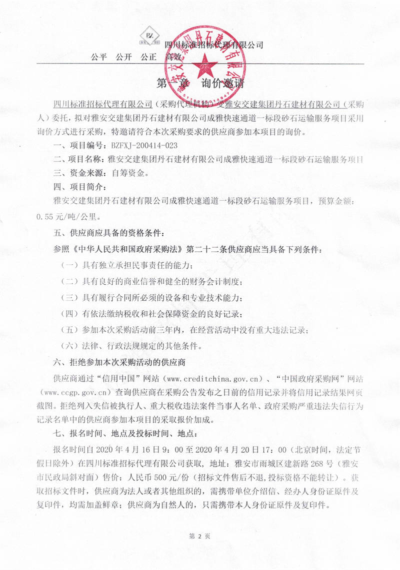 雅安交建集團(tuán)丹石建材有限公司成雅快速通道一標(biāo)段砂石運(yùn)輸服務(wù)項目詢價公告