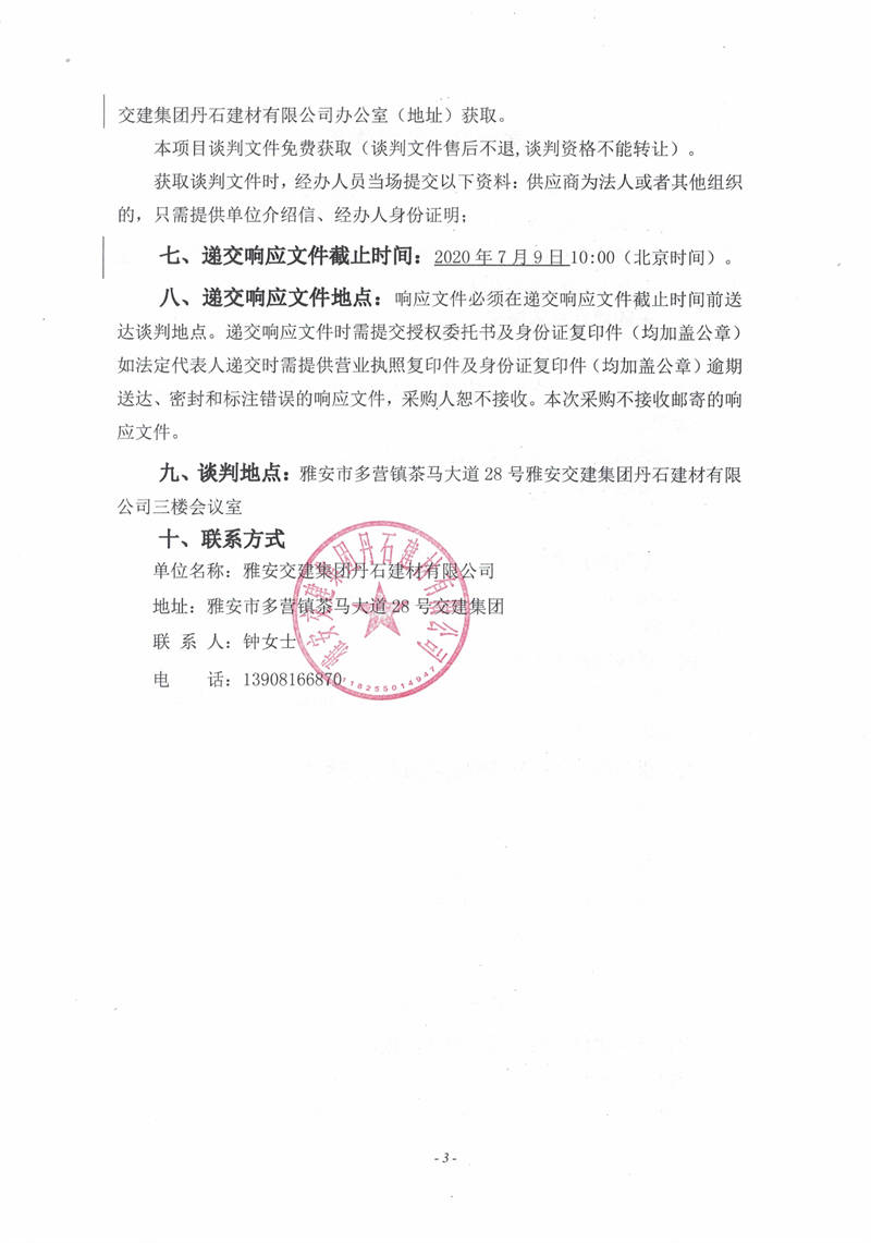 雅安交建集團丹石建材有限公司砂石加工系統(tǒng)粗碎車間膠帶機變更工程競爭性談判邀請公告