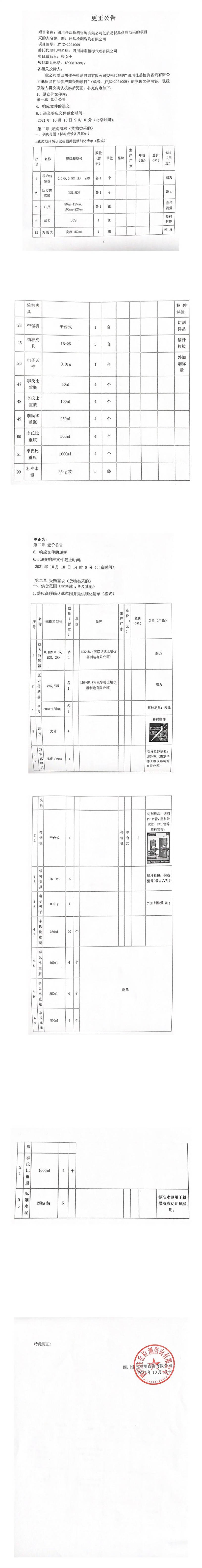 四川佳岳檢測咨詢有限公司低質(zhì)易耗品供應商采購項目更正公告