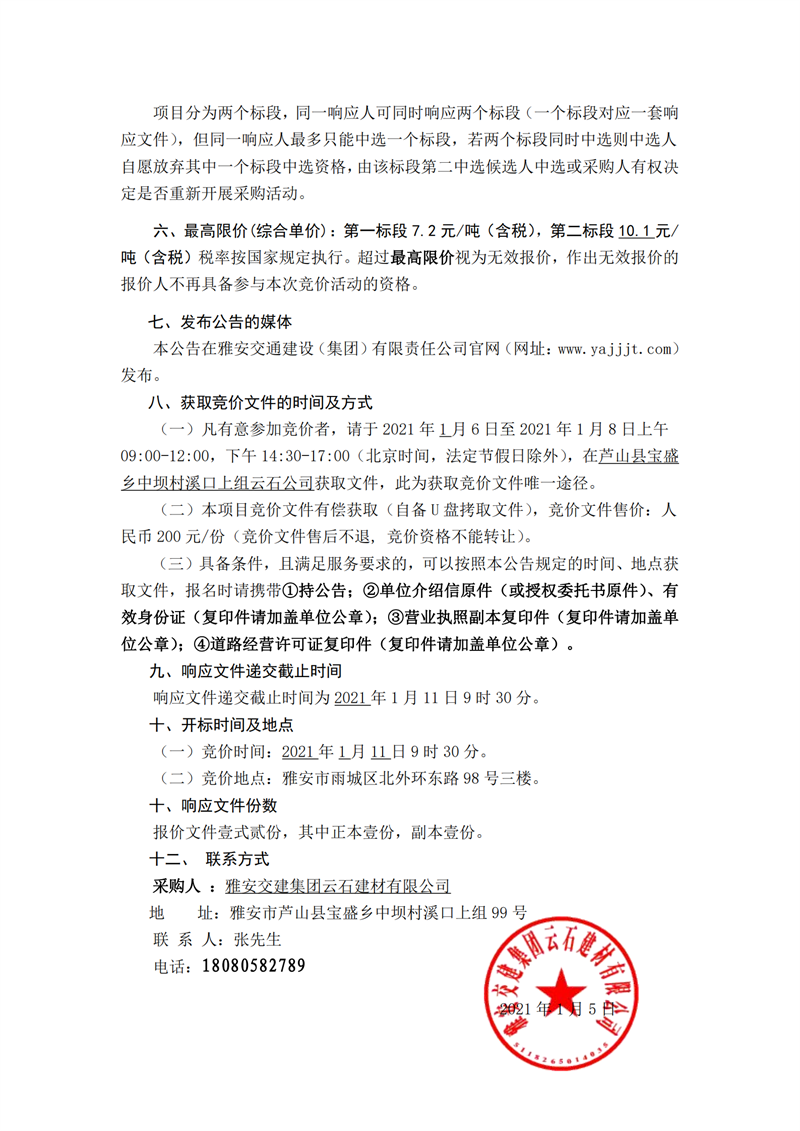雅安交建集團(tuán)云石建材有限公司太平河清障項(xiàng)目運(yùn)輸服務(wù)競價邀請公告