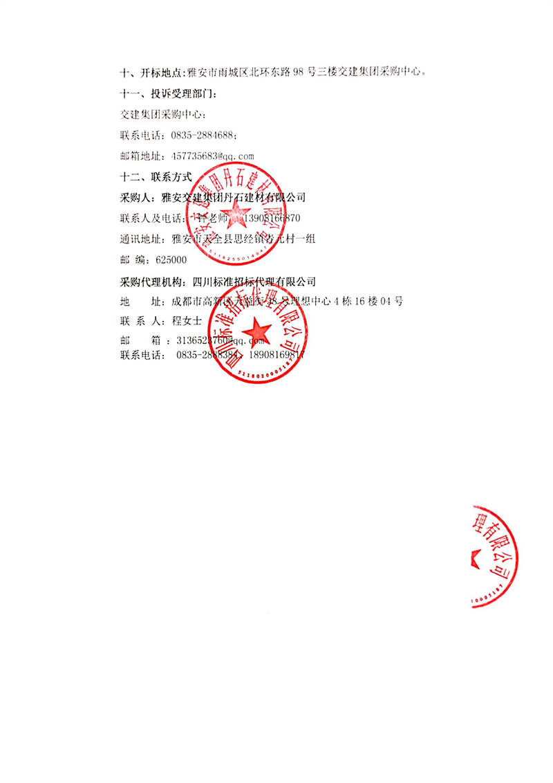 雅安交建集團丹石建材有限公司廠區(qū)附屬安全環(huán)保勞務服務項目競爭談判公告