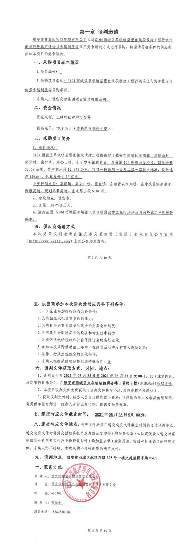 雅安交建集團項目管理有限公司S104雨城區(qū)草壩鎮(zhèn)至望魚鎮(zhèn)段改建工程行洪論證與河勢穩(wěn)定評價報告編制服務(wù)采購項目競爭談判公告