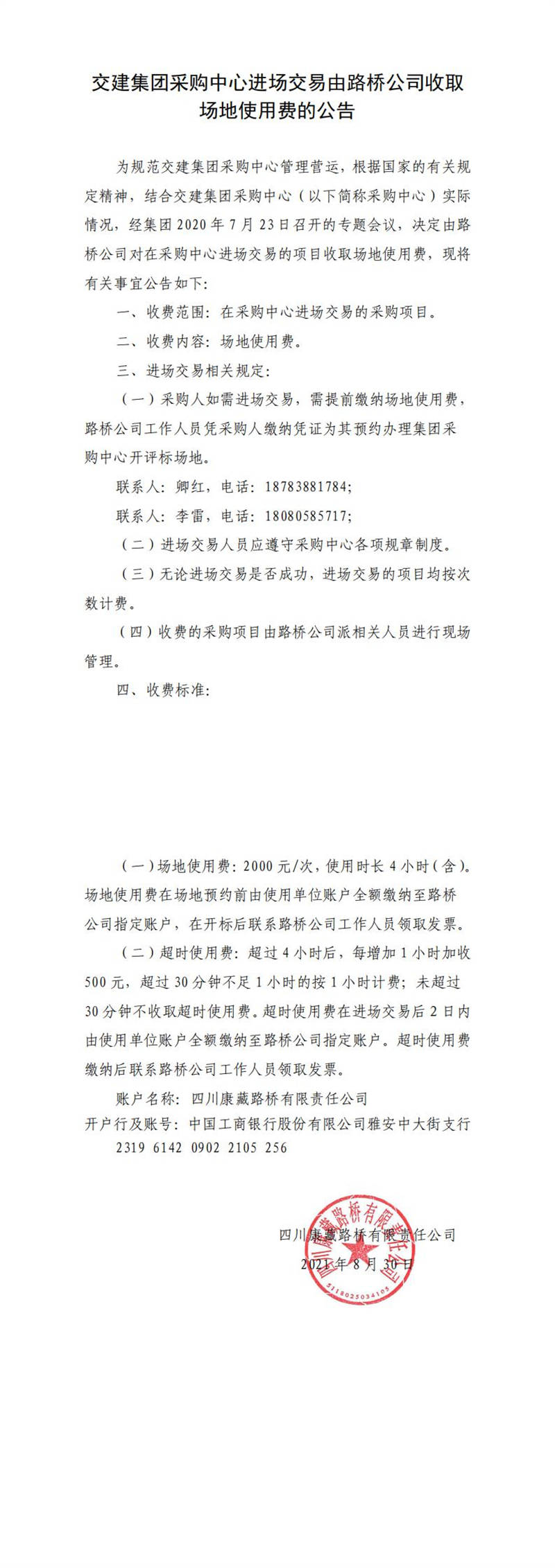交建集團(tuán)采購中心進(jìn)場交易由路橋公司收取場地使用費的公告