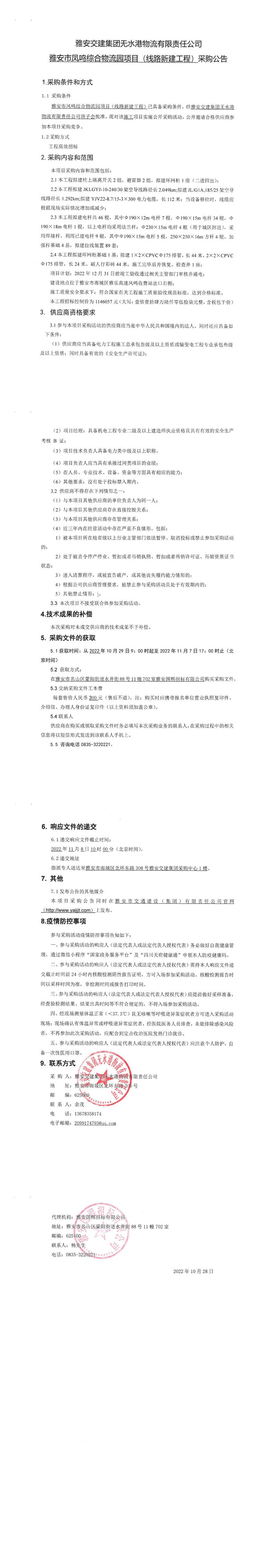 雅安交建集團無水港物流有限責(zé)任公司雅安市鳳鳴綜合物流園項目(線路新建工程)采購公告