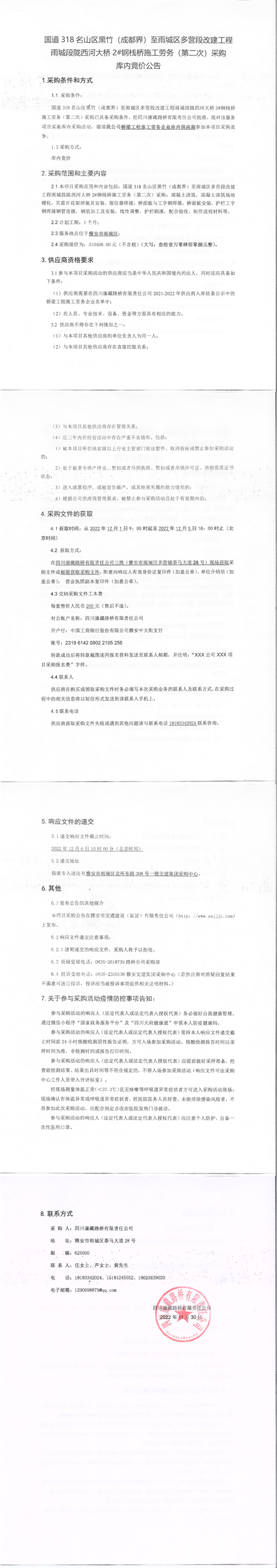 四川康藏路橋有限責(zé)任公司國道318名山區(qū)黑竹(成都界)至雨城區(qū)多營段改建工程雨城段隴西河大橋2#鋼棧橋施工勞務(wù)(第二次)采購庫內(nèi)競價(jià)公告