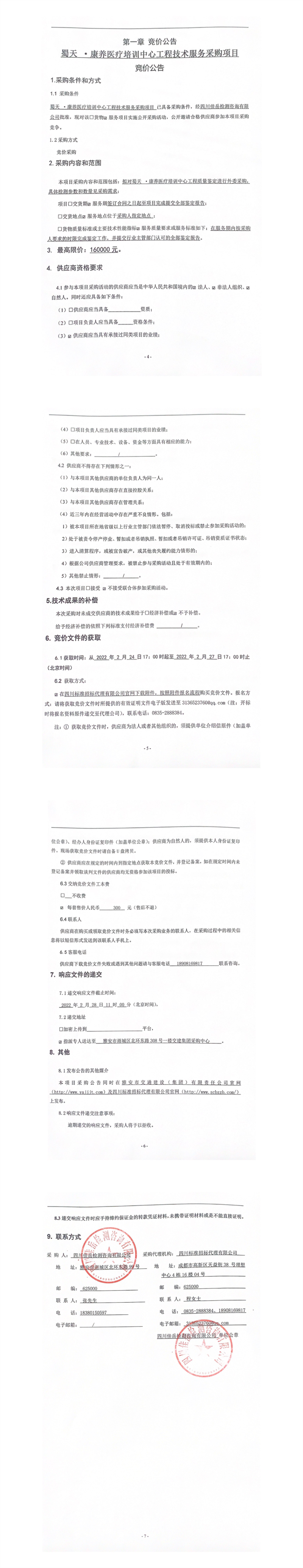 四川佳岳檢測咨詢有限公司蜀天.康養(yǎng)醫(yī)療培訓(xùn)中心工程技術(shù)服務(wù)采購項目競價公告
