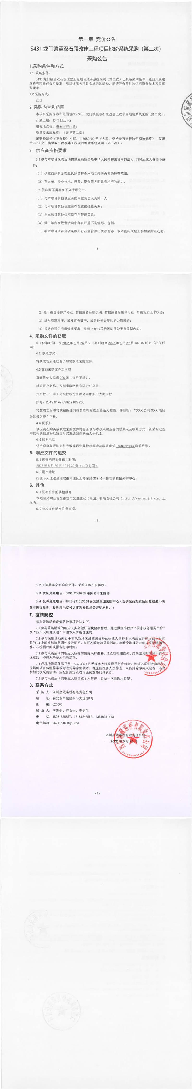 四川康藏路橋有限責(zé)任公司S431龍門鎮(zhèn)至雙石段改建工程項(xiàng)目地磅系統(tǒng)采購(第二次)采購公告