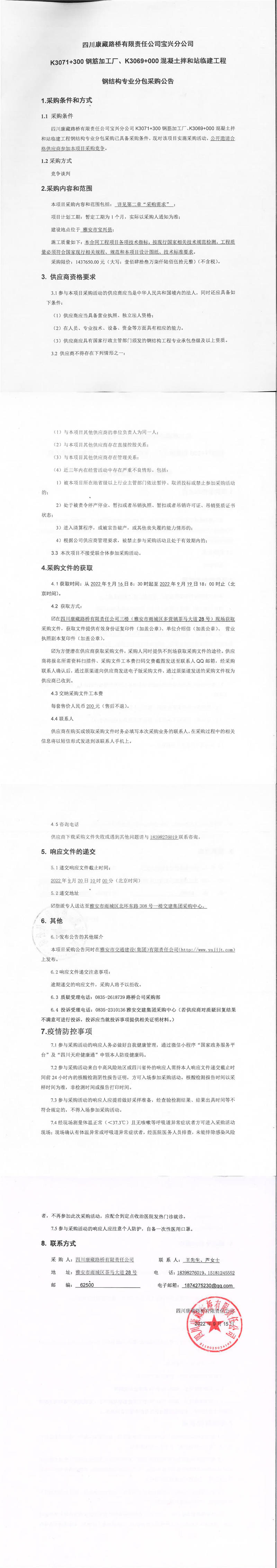 四川康藏路橋有限責任公司寶興分公司K3071+300鋼筋加工廠、K3069+000混凝土拌和站臨建工程鋼結(jié)構(gòu)專業(yè)分包采購公告