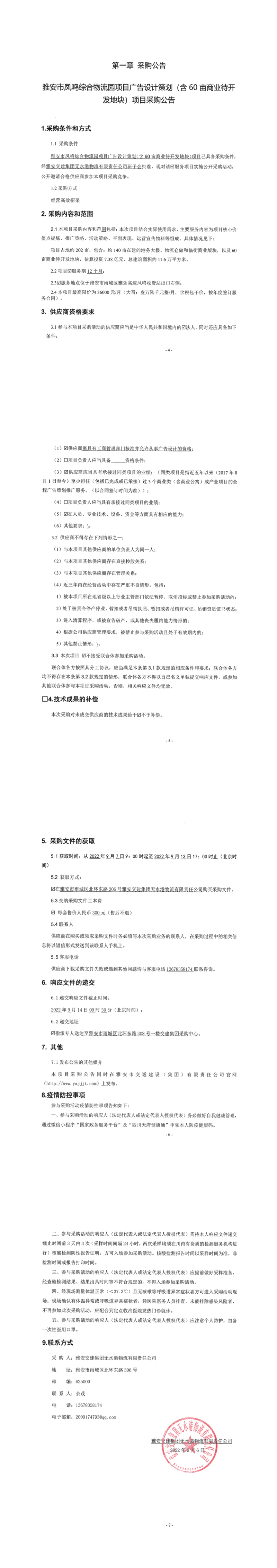 雅安交建集團(tuán)無(wú)水港物流有限責(zé)任公司雅安市鳳鳴綜合物流園項(xiàng)目廣告設(shè)計(jì)策劃(含60畝商業(yè)待開發(fā)地塊)項(xiàng)目采購(gòu)公告