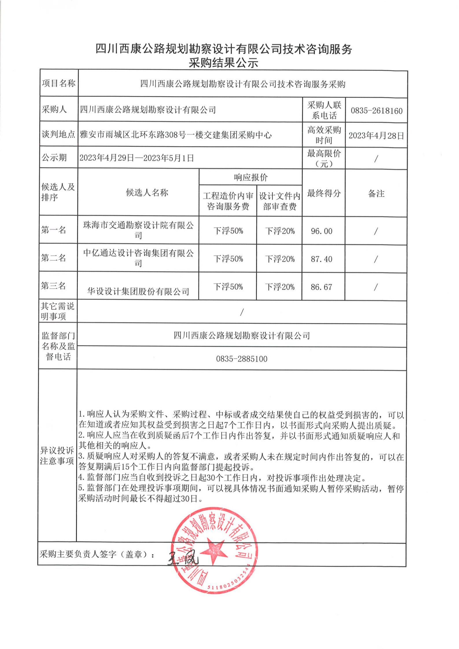 四川西康公路規(guī)劃勘察設(shè)計有限公司技術(shù)咨詢服務(wù)采購結(jié)果公示