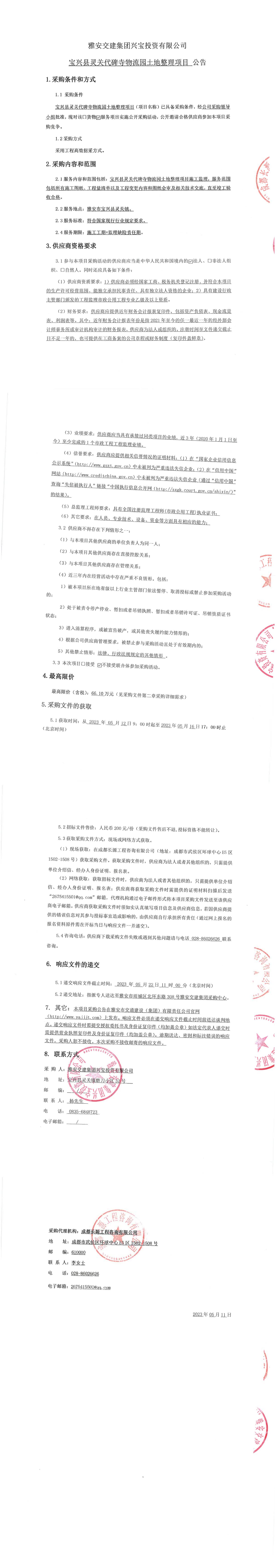 雅安交建集團興寶投資有限公司寶興縣靈關代碑寺物流園土地整理項目公告