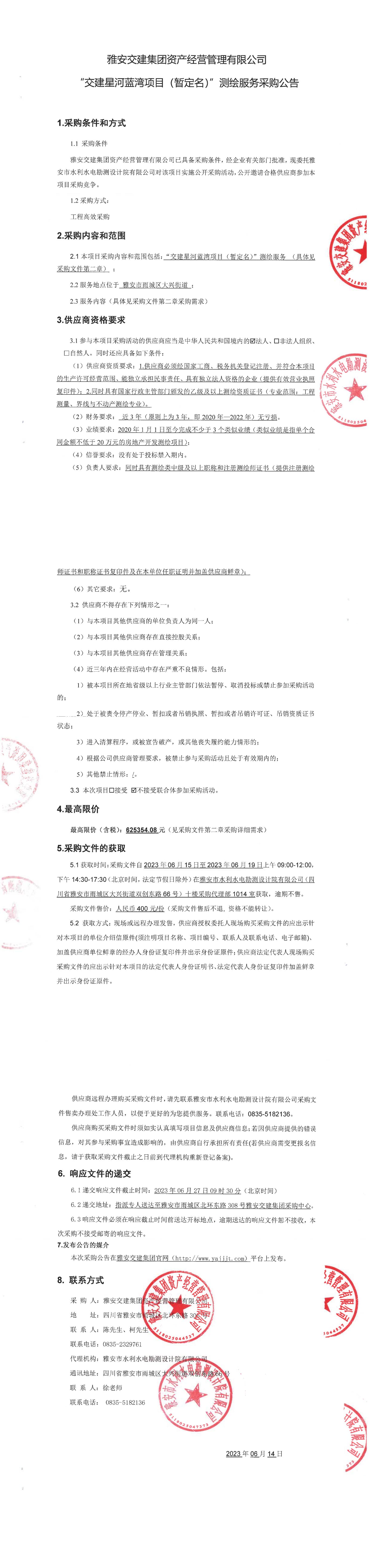 雅安交建集團(tuán)資產(chǎn)經(jīng)營管理有限公司“交建星河藍(lán)灣項目(暫定名)”測繪服務(wù)采購公告