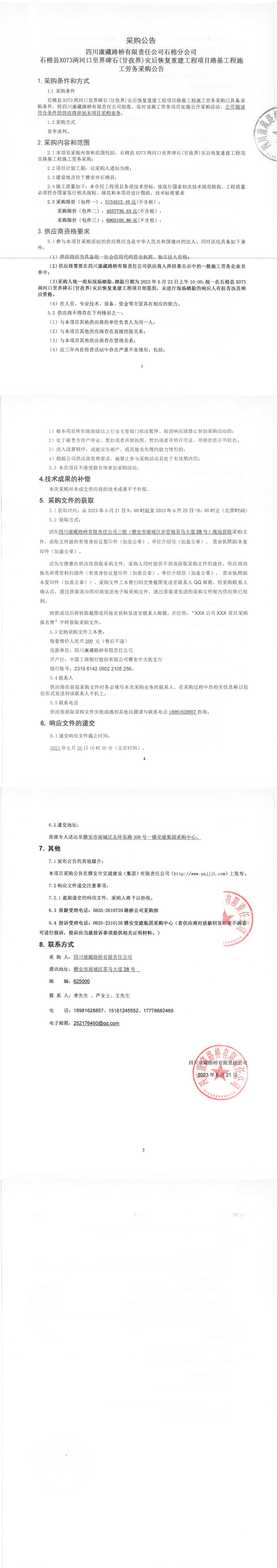 四川康藏路橋有限責(zé)任公司石棉縣X066王崗坪至王崗坪景區(qū)段災(zāi)后恢復(fù)重建工程項目路面工程K0+000-K48+691七標段施工勞務(wù)采購公告