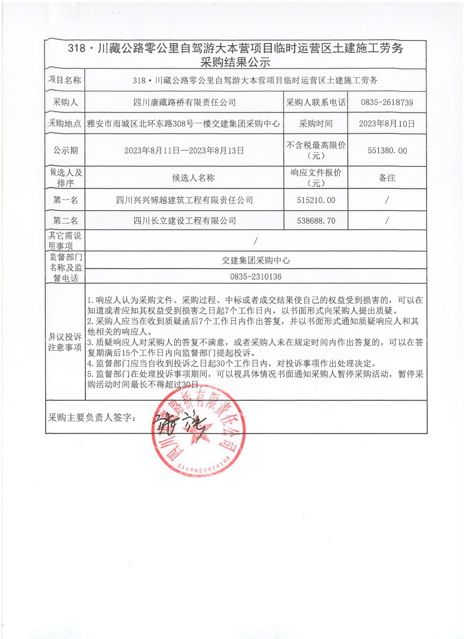 四川康藏路橋有限責(zé)任公司318·川藏公路零公里自駕游大本營項(xiàng)目臨時(shí)運(yùn)營區(qū)土建施工勞務(wù)采購結(jié)果公示