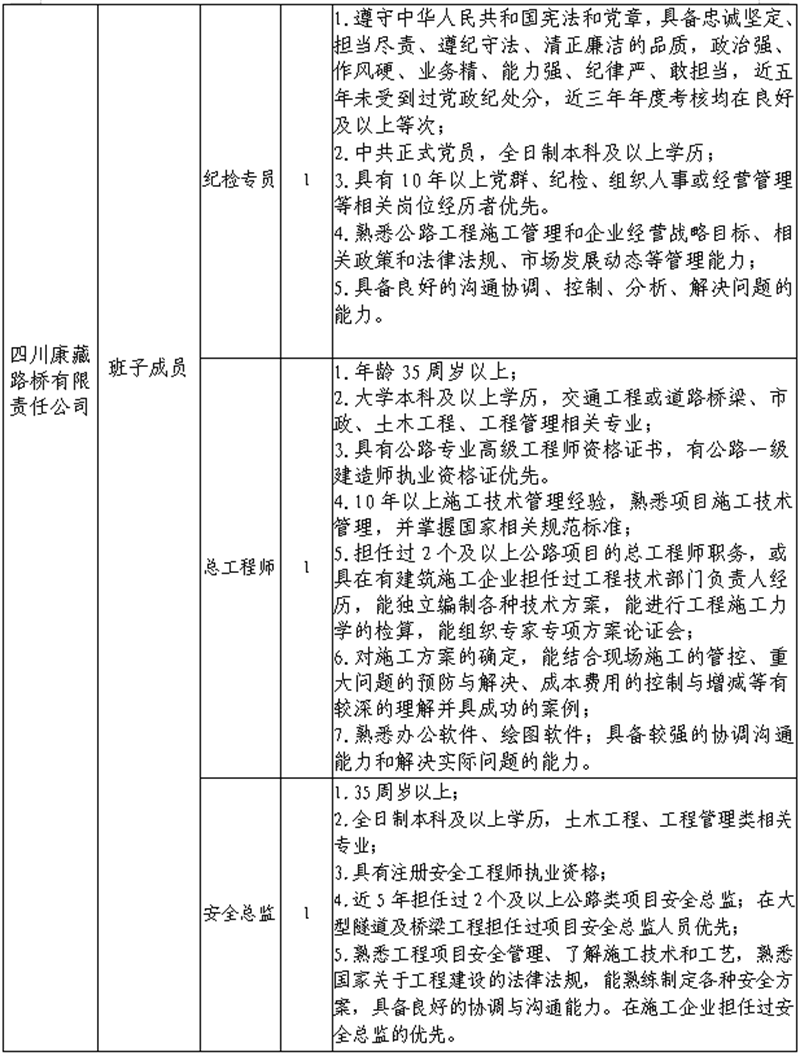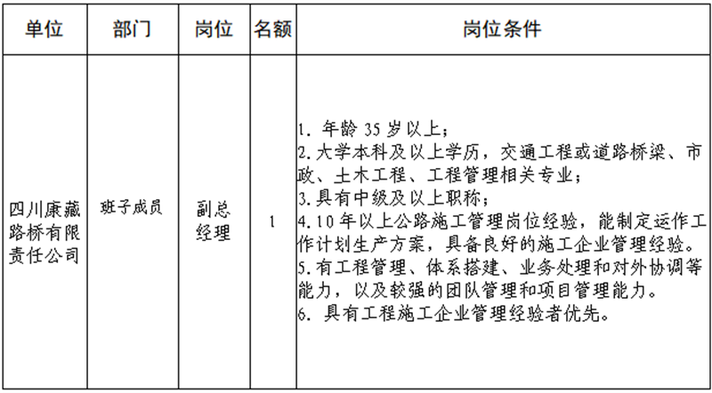 雅安交建集團關于公開招聘所屬子公司班子成員的公告(路橋公司)