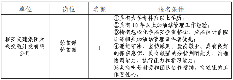 雅安交建集團(tuán)關(guān)于公開(kāi)招聘所屬子公司工作人員的公告(大興開(kāi)發(fā)公司)