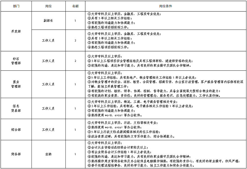 雅安交建集團運通貿(mào)易有限公司是雅安市重點國有企業(yè)雅安市交建集團下屬子公司。根據(jù)公司發(fā)展需要,決定面向社會公開招聘9名工作人員,現(xiàn)將有關(guān)事項公告如下: