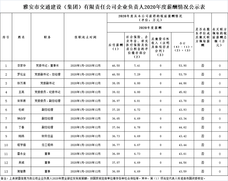 2020年交建集團(tuán)企業(yè)負(fù)責(zé)人薪酬情況公示