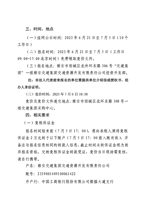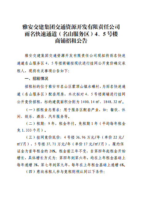 雅安交建集團(tuán)交通資源開發(fā)有限責(zé)任公司雨名快速通道(名山服務(wù)區(qū))4、5號樓招租公告附件