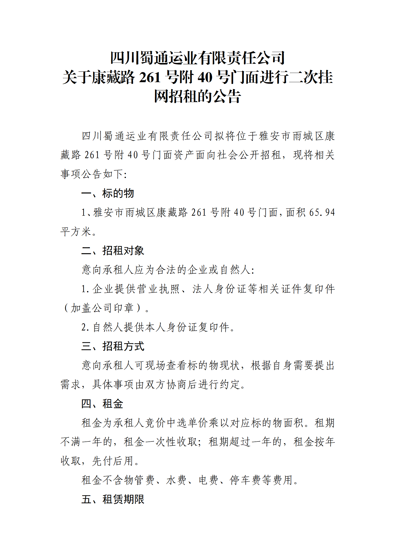 ËÄ´¨Êñͨß\˜I(y¨¨)ÓÐÏÞØŸÈι«Ë¾ êPÓÚ¿µ²ØÂ·261Ì–¸½40Ì–éTÃæßMÐжþ´Î’ì¾WÕÐ×âµÄ¹«¸æ