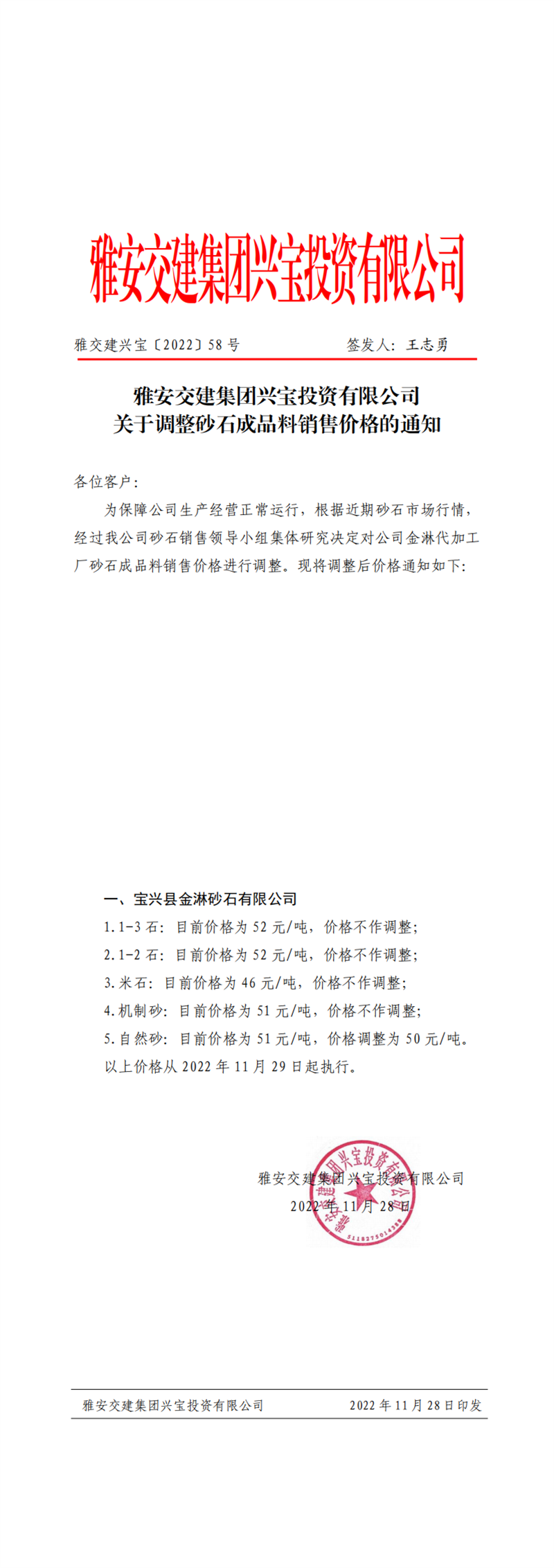 ÑŽ»½¨ÅdŒš¡²2022¡³58Ì–(h¨¤o) êP(gu¨¡n)ÓÚÕ{(di¨¤o)Õûɰʯ³ÉÆ·ÁÏäNÊÛƒr(ji¨¤)¸ñµÄ֪ͨ